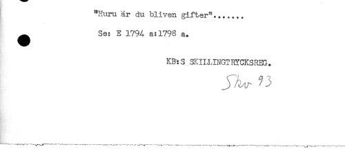 //// "Huru är du bliven gifter"....... //// ^ Se: E 1794 a:1798 a. //// KB:S SKILLINGT RYCKSREG. //// - ////