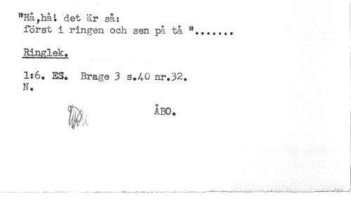 //// "Ha,hat det är så: //// först i ringen och sen på tå //// Ringlek. i //// 1:6. E3. Brage 3 s.40 nr.32. ! //// N. //// i //// _______ ., ........t______-____-___,_____._______-.............^-J ////