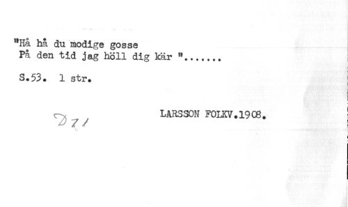 //// ...... ....... //// "Hå hå du modige gosse //// På den tid jag höll dig kär "....... //// S.53. 1 str. //// = //// LARSSON F0LKV.19C8. ! //// t //// ! ////