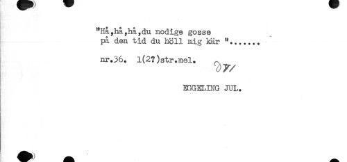 //// "Hå,ha,hå,du modige gosse //// på den tid du höll mig kär "....... //// nr.36. l(2?)str.mel. ^ //// EGGEMNG JUL. ////