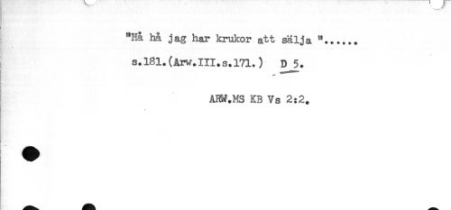 //// "Hå hå jag har krukor att sälja "...... //// s.l8l.(Arw.IIl.s.l71.) D_5. //// ! //// I AM.MS KB Vs 2:2. //// t ////
