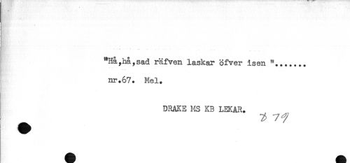 //// / //// "Ha,ha,sad räfven laskar öfver isen "....... //// nr.67. Mel. //// DRAKE MS KB LEKAR. ////