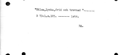 //// "Hälsa,lycka,frid och trevnad "....... //// B 73:l.s.l85.....- lstr. //// RA. //// ) ////