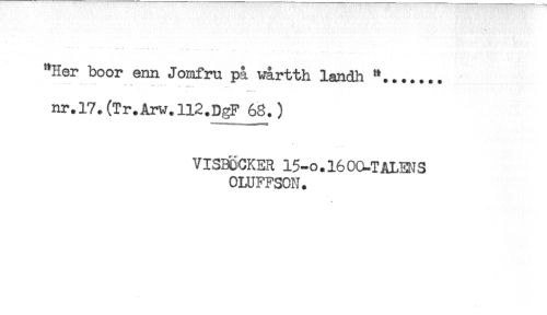 //// "Her boor enn Jomfru på wårtth landh "....... //// nr.l7.(Tr.Arw.ll2.DgF 68.) //// VISBCCKER 15-o. 16 OO-T ÅLENS //// OLUFFSON. ////