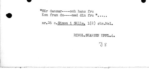 //// "Här dansar----och hans fru //// j ^^ Kom fram du--med din fru ",.*.. //// c.Simon i Sälle. 1(2) str.Mel. //// RINGL. SKM SM UPPL . 4. //// < //// * ////