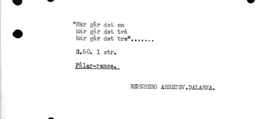 //// "Här går det en //// ^^ här går det två //// ^^ här går det tre*.,..... //// S.60. 1 str. //// Pålar-ramsa. //// REHNBE3G ARBErsV.DALARMA. ////
