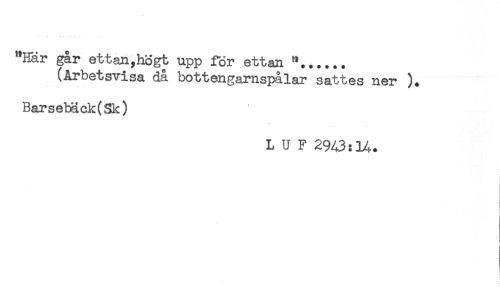 //// "Här går ett an,högt upp för ettan "...... //// (Arbetsvisa då bottengarnspålar sattes ner ). //// Barsebäck(Sk) //// L U F 2%3:H. //// I //// i ////