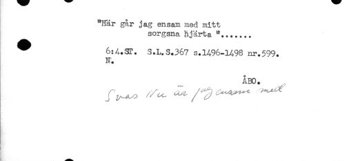 //// "Här går jag ensam med mitt //// sorgsna hjärta //// ^ 6:A.ST. S.L.S.367 S.1A96-L498 nr.599. //// N. //// , ////