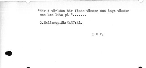//// "Här i världen bär finns vänner men inga vänner //// man kan lita på "....... //// O.Sallerup.Sk:2427:41. //// L U F. ////