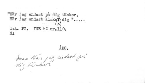 //// ...... //// "Här jag endast på dig tänker, //// Här jag endast älsk^dig "..... //// 1:4. PY. INE 60 nr. 110. //// NI //// ÅBO. //// ^\ ., ^^ 2. ////