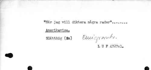 //// / //// "Här jag vill diktera några rader".....,.. //// Amerikavisa. //// Slätthög (3m) * //// L U F 4727:1. ////