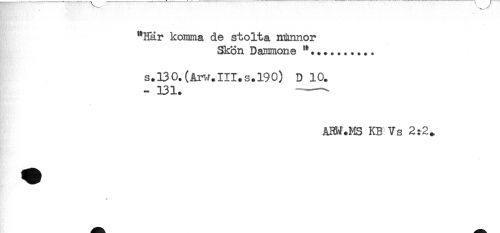//// "Här komma de stolta rnhnnor //// Skön Dammone ".......... //// s.B0.(Arw.III.s.l90) D 10. //// - 131. -- //// AHM.MS KB Vs 2:2, //// * ////