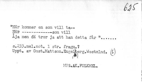 //// } //// * //// t //// "Här kommer en som vill ta- //// Iiäi? -----------som vill //// A ja men dä tror ja att han detta får //// ......... ^ //// ! //// s. 233.mel.not. 1 str. fragm.? //// Uppt. av Gust.Matt son. Enge^erg.Westmlnd. //// 1-IUS.AI^FCm.IEL. //// ! //// : ////