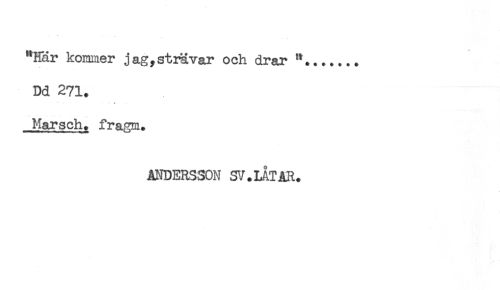 //// "Här kommer jag,strävar och drar ..... //// Dd 271. //// Marsch, fragm. //// ANDERSSON SV. LÅT AR. ////