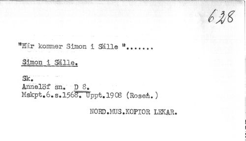 //// "Här kommer Simon i Sälle "....... //// Simon i Sälle. //// Sk. //// Annelöf sn. D 8. //// Mskpt.6.s.l%?T"Pppt.l9C8 (RoseA.) //// NORD.HUS.KOPIOR LEKAR. //// i //// i //// ) //// i ////