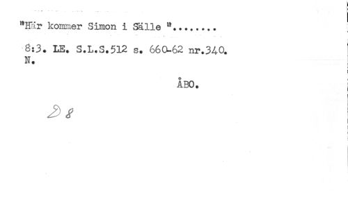//// -. . .E - - -- .. . .. . //// "Här kommer Simon i ^lie ".........^ //// ^ ... //// 8:3. LE. 3.L.S.512 s. 660^62 nr.340. //// N. //// j //// ÅBO. ^ //// i //// ) ////