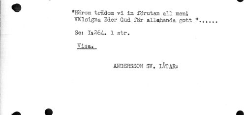 //// ^ "Härom trädom vi in förutan all me^ //// Välsigna Eder Gud för allehanda gott //// Se: It26A. 1 str. //// Visa. //// ANDERSSON SV. LÅTAR: ////