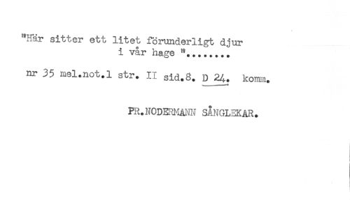 //// **Här sitter ett litet förunderligt djur //// i vår hage //// nr 35 mel.not.l str. II gj.d.8. komm. //// PR.N0DEM'IÅNN SÅNGLEKAR. //// i //// r //// ) ////
