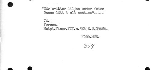 //// "Här sviktar liljan under foten //// Dansa lätt å slå emot-en*'..+.. //// jä. //// Forsbn. //// Mskpt.Visor.VH.s.506 E.U.29686. //// NORD .HUS. ////
