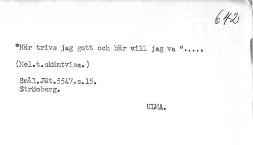 //// * ) //// "Här trivs jag gott och här vill jag va j //// (Mel.t. sMimtvisa.) //// Snål. Jät. 5 547. s. 15. //// Strömberg. //// ULMA. //// i ////
