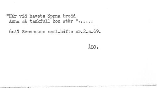//// "Här vid havets öppna bredd //// ånna så tankfull hon står //// 6:4? Svenssons saral.häfte nr.2.s.69. //// ÅBO. ////