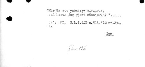 //// "Här är ett ynkeligt karaskri: //// vad haver jag gjort människan? "...... //// 5:4. PY. S.L.S.542 s.518-520 nr.294. //// N. //// ÅBO. ////