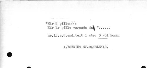 //// "Har ä gille://: //// Här är gille varenda d;å //// nr.l3.s.8.end.text 1 str. D 261 koran. //// A.YSENIUS SV.DANSLEKAR. ////