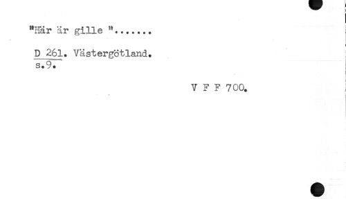 //// "Här är gille "....... //// D 261. Västergötland. : //// s.9. //// V F F 700. //// i ////