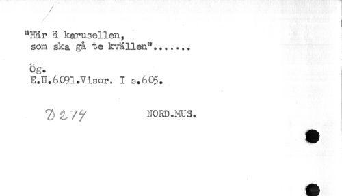 //// "Här ä karusellen, //// som ska ga te kvällen"....... //// Ög. //// E.U.6091.Visor. I s.605. //// NORD .MUS. //// - - ////
