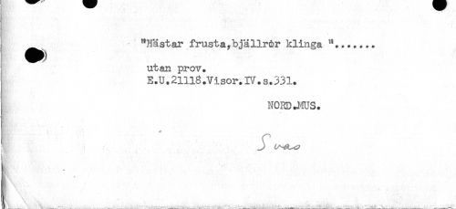 //// I ^^ "Hästar frusta^bjällrér klinga //// ' utan prov. //// ! E .U. 21118 .Vi sor. W.s.331. //// } NORD^IUS. //// c ////
