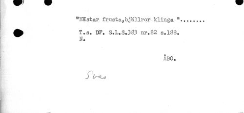 //// [ "Hastar frusta,bjällror klinga //// ^ T.s. DF. S.L.S.383 nr.82 s.188. //// N. //// ÅBO. //// J & ////
