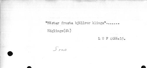 //// t . - ' !* ' //// r - //// - //// R'.- ......... ...-....... - .. - . < //// "Hästar frusta bjällror klinga^....... //// .....^ - ,.. //// Höglinge(Sk) //// L U F 4026:15. ////