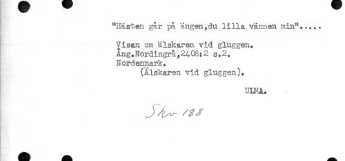 //// Visan om älskaren vid gluggen. //// Ang.Nordingrå,2^06:2 s.2. //// Nordenmark. //// (Älskaren vid gluggen). //// ULMA. //// - //// J ^ //// - ////
