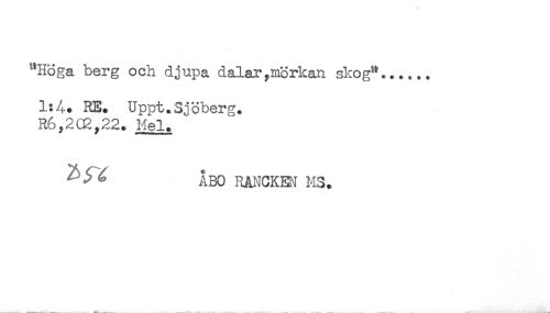 //// "Höga berg och djupa dalar,mörkan skog"...... //// 1:4. RE. Uppt.Sjöberg. //// R6,2C2,22. Mel. //// ^ ^ ÅBO RANCKM MS. ////
