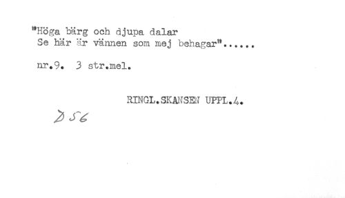 //// "Höga bärg och djupa dalar //// Se här är vännen som mej behagar"...... //// nr+9. 3 str.mel. //// RINGL.SKANS3N UPP1.4. ////