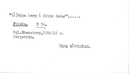 //// Polska. D 56. //// A . //// Vgl.Stenstorp, 103:233 e. //// Bergstron. //// ULMA SÅNGLEKAR. ' //// f //// t ////