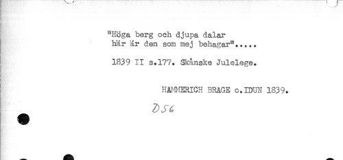 //// "Höga berg och djupa dalar //// I här är den som mej behagar"..... //// I 1839 II s.177. Skånske Julelege. //// ! HAMERICH BRAGE o.IDUN 1839. //// Ms ////