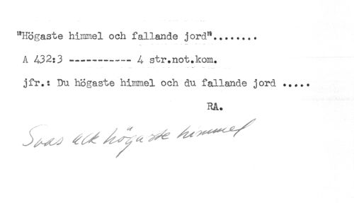 //// A 432:3 ------ A str.not.kom. //// - .. ^ - * ... *-' //// jfr.: Du högaste himmel och du fallande jord ..... //// RA. ////