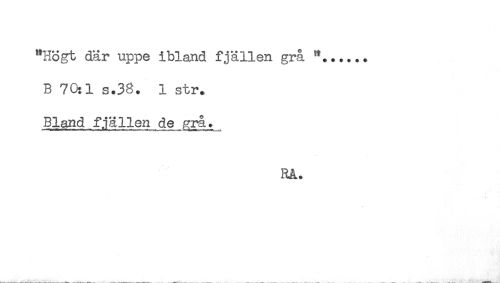 //// "Högt där uppe ibland fjällen grå //// B 70:1 s.38. 1 str. //// Bland fjällen de ^rå. //// Rå. ////