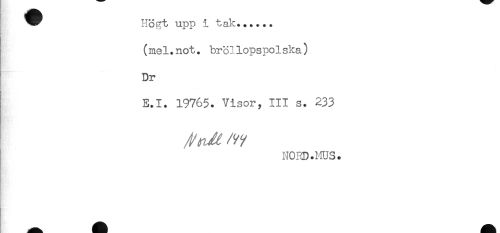 //// Högt upp i tak...... //// (mel.not. bröllopspolska) //// Dr //// E.I. 19765. Visor, III s. 233 //// N03D.MUS. ////
