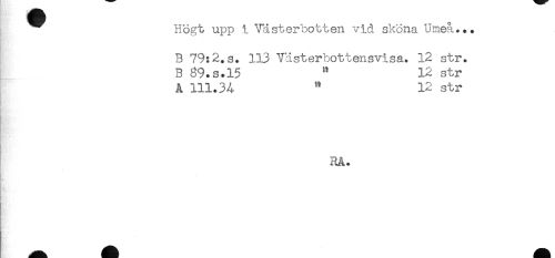 //// ^^ Högt upp i Västerbotten vid skona Umeå... //// B 79:2.s. 113 Västerbottensvisa. 12 str. //// B 89.S.15 " 12 str //// A 111.34 " 12 str //// RA. ////