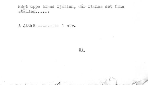 //// Högt uppe bland fjällen, där fi-mes det fina //// ställen...... //// A 400:8--........1 str. //// RA. //// ,. ^ j, _ ////