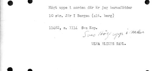 //// Högt uppe i norden där är jag barnafodder //// 10 str. Jfr I Bergen (alt. berg) //// t //// - //// * //// ' 11A82, s. 111A Sva Kop. //// LUfA BLIXTS SAHL. ////