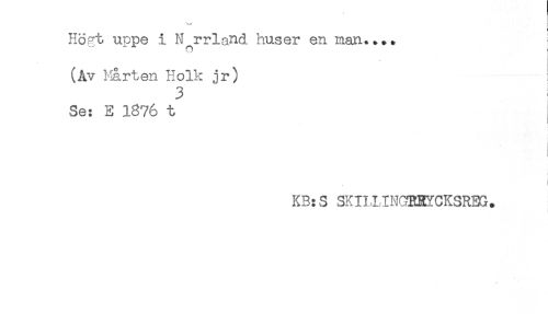 //// uupe i N rrland huser en man.... //// ** * //// (Av Mårten Holk jr) //// 3 //// Se: E 1876 t //// KB:S SKILLINOREYCKSREG. //// * ////