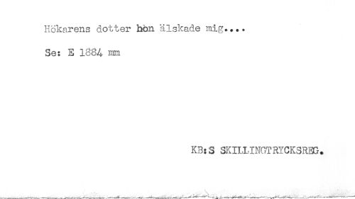 //// Hökarens dotter bön älskade mig.... //// Se: E 1884 mm //// KB:S SKILLINGTRYCKSRm^ ////