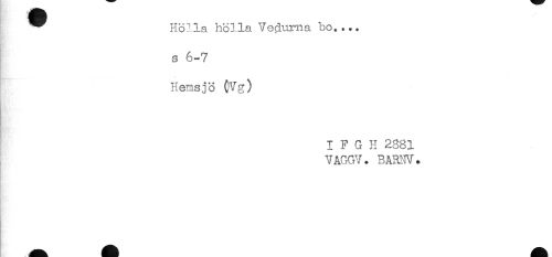 //// * Holla hölla Vedurna bo.... //// s 6-7 //// Heasjö (Vg) //// I F G H 2881 //// ? AGGY. RARNV. ////