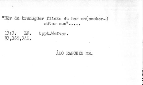 //// "Hör du brunögder flicka du har en(socker-) //// söter mun"..... //// 13:3. LF. Upot.Wefvar. //// R3,165,346. //// ÅBO RANCKBN MS. //// t //// L //// * //// s //// F //// t- //// g //// H //// H //// H ////