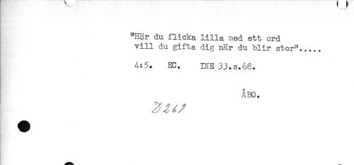 //// "Hör du flicka lilla med ett ord //// vill du gifta dig när du blir stor"..... //// 4:5. EC. INE 33.S.68. //// ÅBO. ////