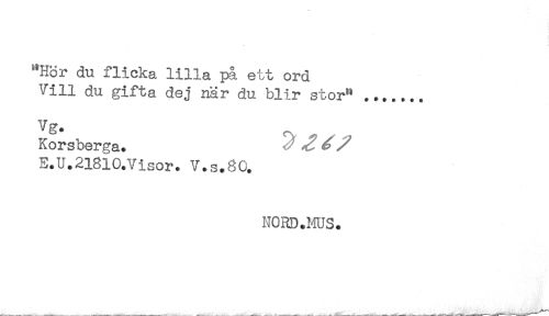 //// "Hör du flicka lilla pl ett ord //// Vill du gifta dej när du blir stor" ....... //// Korsberga. - ^ //// E.U.2l8lO.Visor. V.s.80. //// NCHD.ms. ////