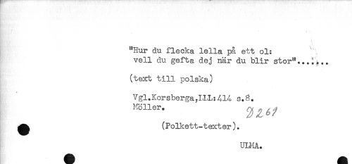 //// t //// "Hur du flecka lella på ett ol: //// vell du gefta dej när du blir stor"...;,.. //// . //// (text till polska) //// * //// Vgl.Korsberga,LLL:4L4 s.8. //// Möller. //// ^ (Polkett-texter). //// n ////